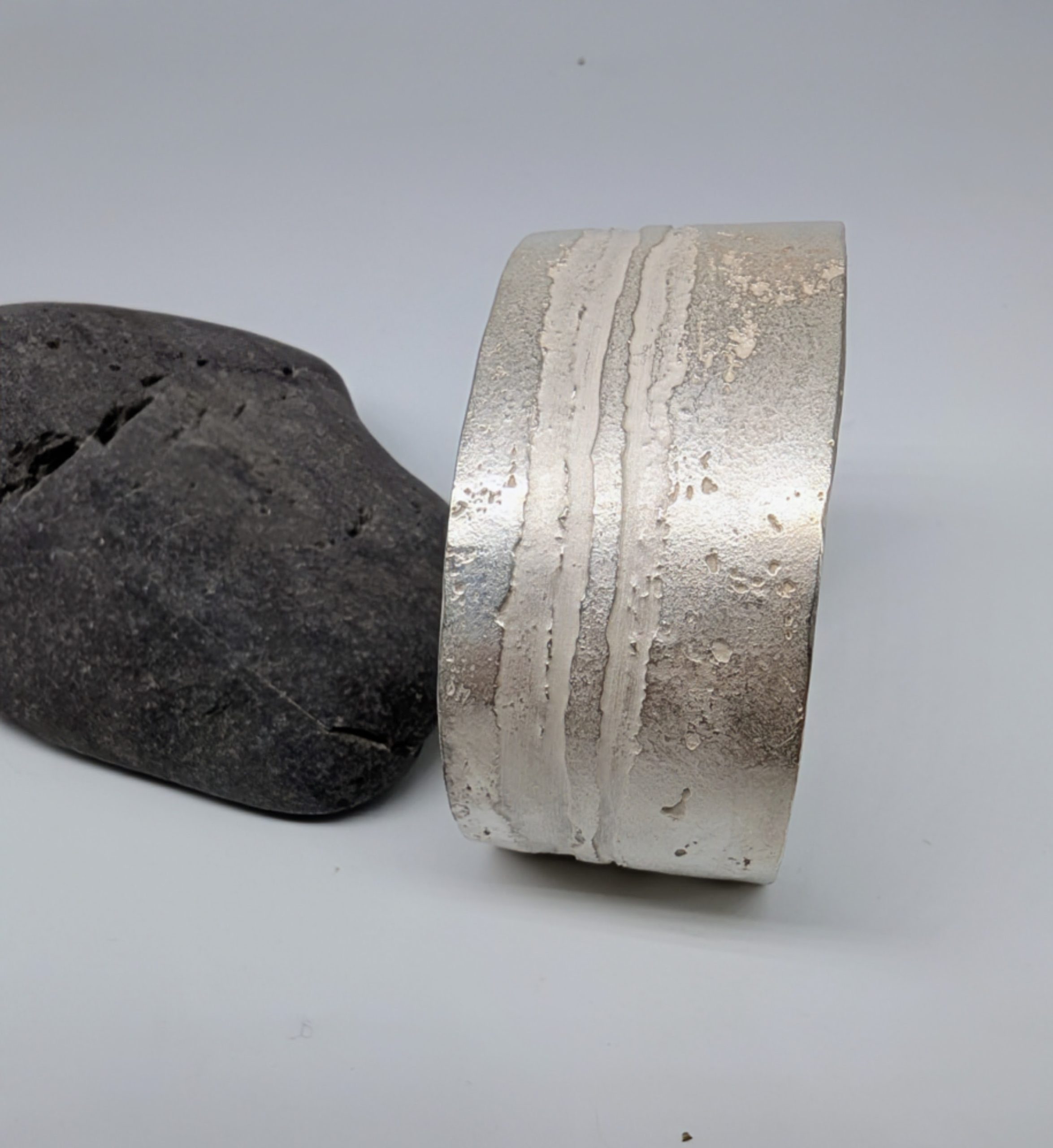 I am a Derbyshire-based jeweller working with steel .From my workshop in Haarlem Mill, my work is inspired largely by the processes I use to make each piece. I use my background as a scientist to experiment with new materials.